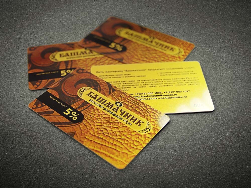 Изготовление пластиковых карт с фактурой. Заказчик «Башмачник»