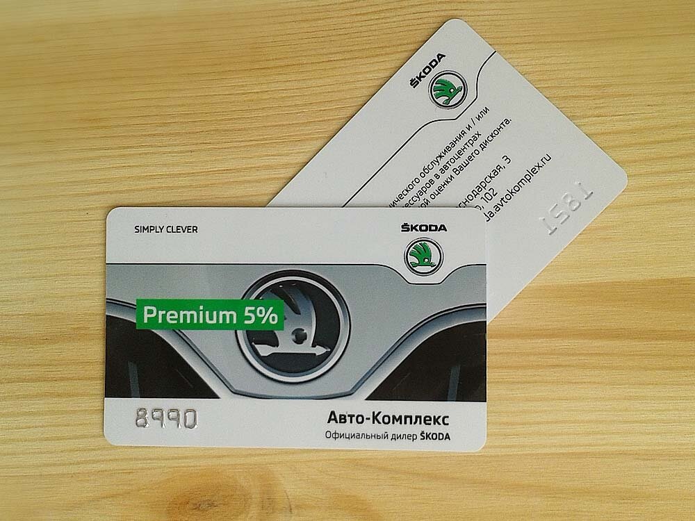 Печать пластиковых карт с эмбоссированием для автосалона «Юг-Авто». Шкода
