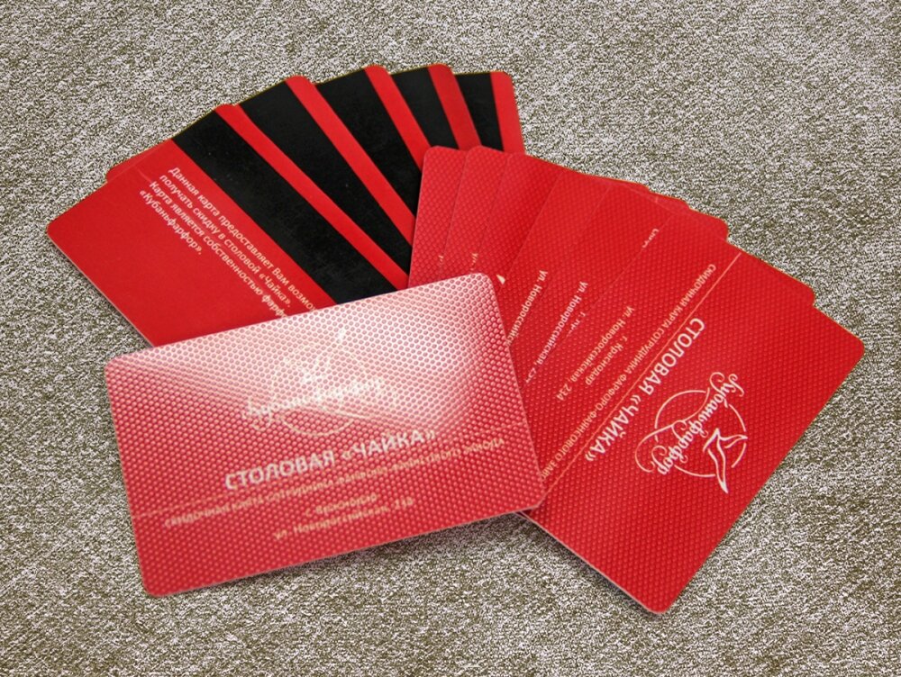 Печать карт на пластике с магнитной полосой и фактурой «круг»