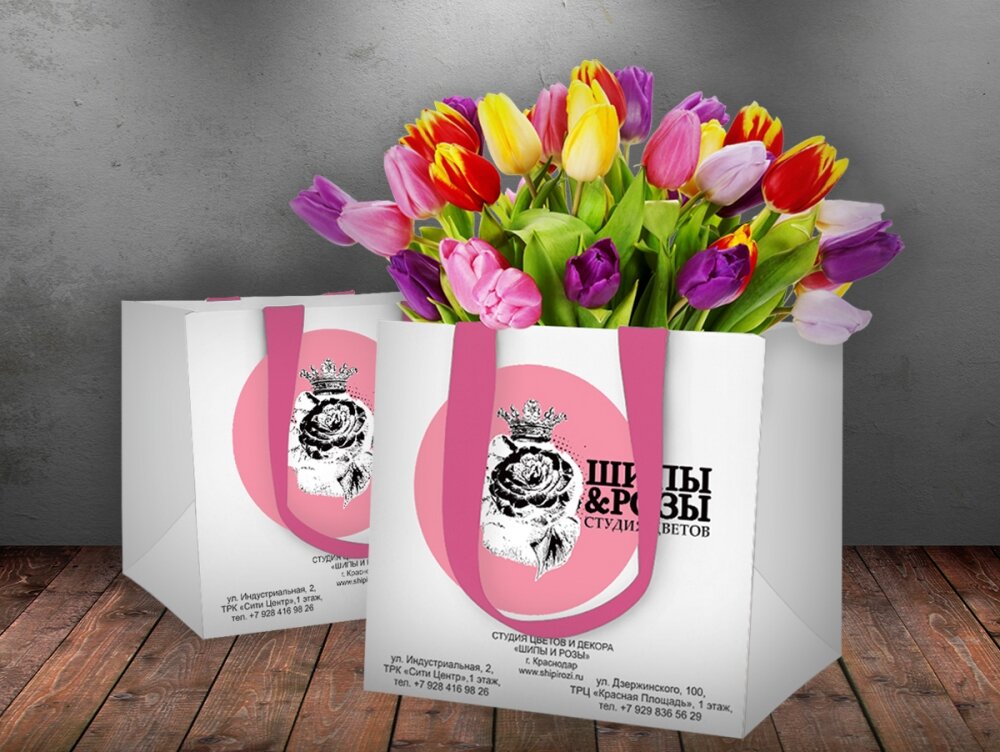 Изготовление бумажных пакетов для компании «Шипы и Розы». Офсетная печать